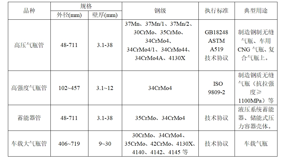 用于制造钢制无缝气瓶、车用CNG气瓶、复合气瓶。我心博网页版登录入口生产的高压气瓶管为管制瓶制造提供优 质的热轧薄壁无缝钢管,具有内外表面质量好、壁厚均匀、质量轻、生产率和成材率高、成本低等优点,便于无缝管制瓶瓶底收口的关键技术的应用,使气瓶管的制 造从采用钢坯经冲孔拉拨转向采用薄壁无缝钢管制造,并已成为发展趋势,深受用户欢迎。