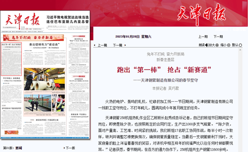 1月28日大年初七,《天津日报》在头版显著位置刊登了《跑出“第一棒” 抢占“新赛道”》的文章,现将文章转发如下。