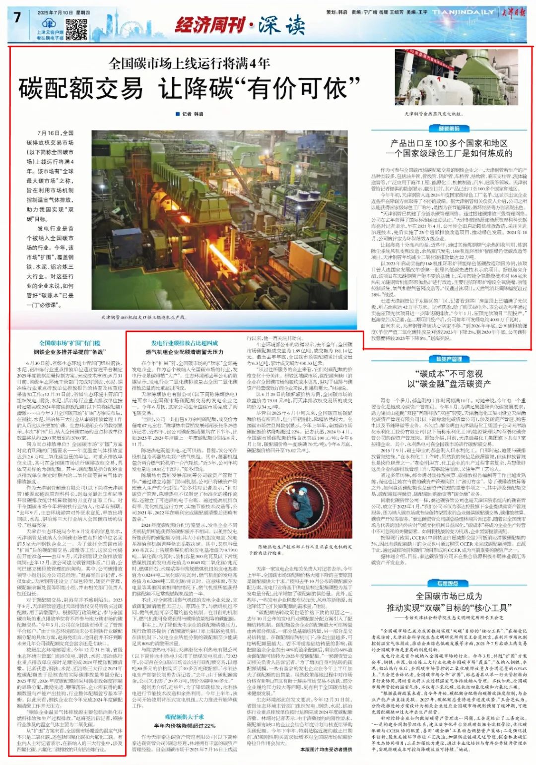 作为可参与全国碳市场碳配额交易的钢铁企业之一,天津钢管所生产的产品种类较多,包括油井管、管线管、锅炉管、车桥管、结构管、液压支柱管、流体输送管等,广泛应用于海洋工程、能源化工、机械制造、汽车、建筑等领域。天津钢管给记者提供的数据显示,截至目前,其产品已出口至100多个国家和地区。